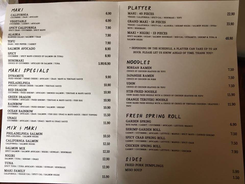 Almost every Friday night is sushi night from Maki Sushi & Noodle. Recommend the Grand Maki platter. Always so fresh and consistent. Don't order in a rush, they need some lead time to prepare your dish, especially Friday evenings. They always have nice cashiers but its a pretty transactional experience. Amazing for takeout but small and plain plaza unit isn't so appealing for dine in but usually most of the seats are full anyway.